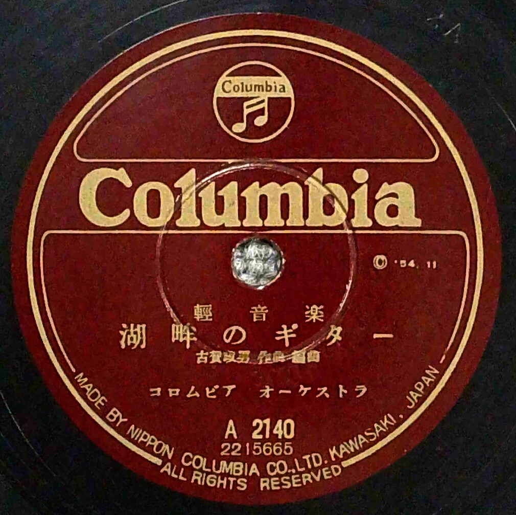 - 軽音楽 SP盤 湖畔のギター / 湯の町椿/ コロムビア・オーケストラ - 古賀政男 美盤 外袋付き コロムビア A2140 /tw79