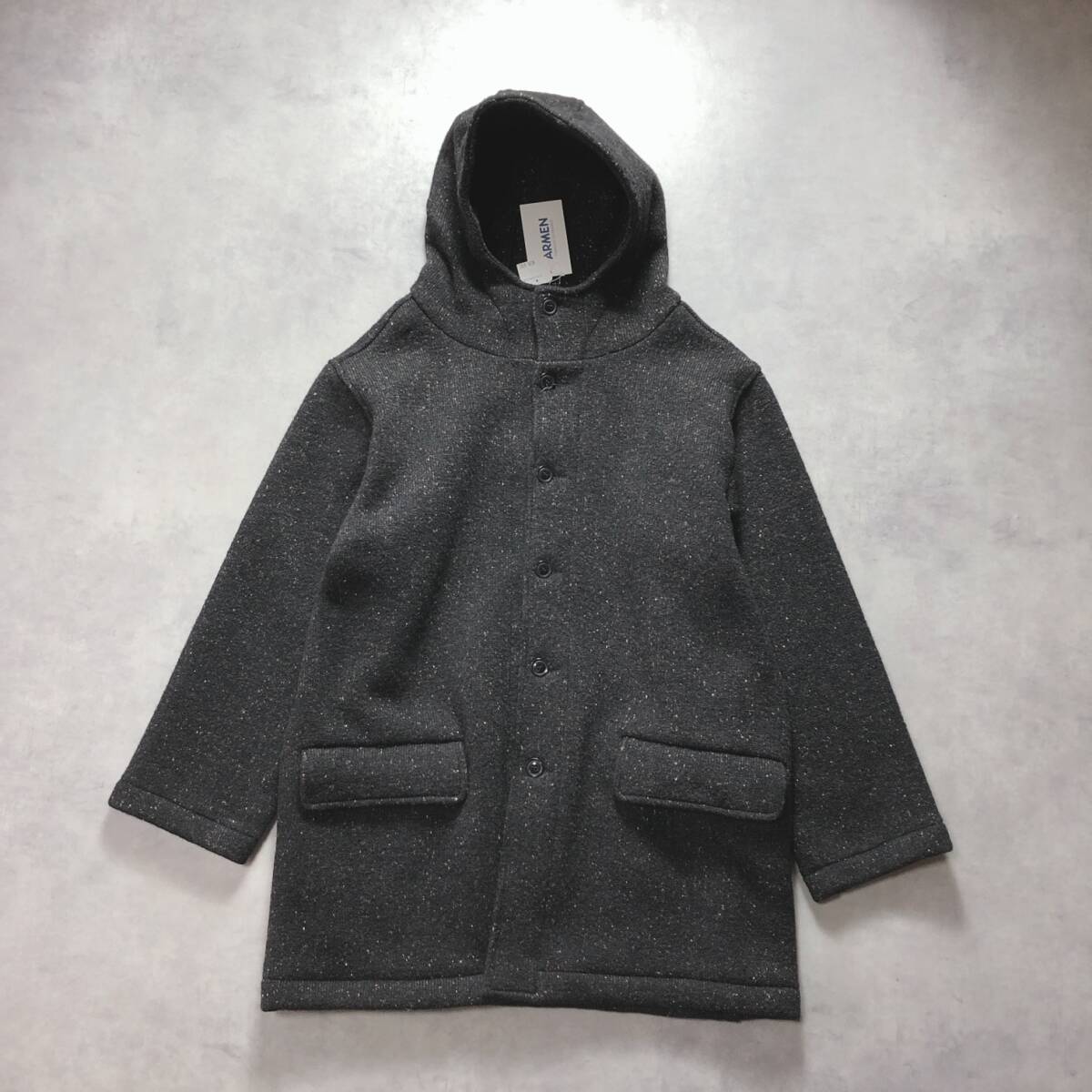 - WQ084●ARMEN : インサイドフリースフードコート●1●黒に近いネップニット生地 定価¥29400- アーメン