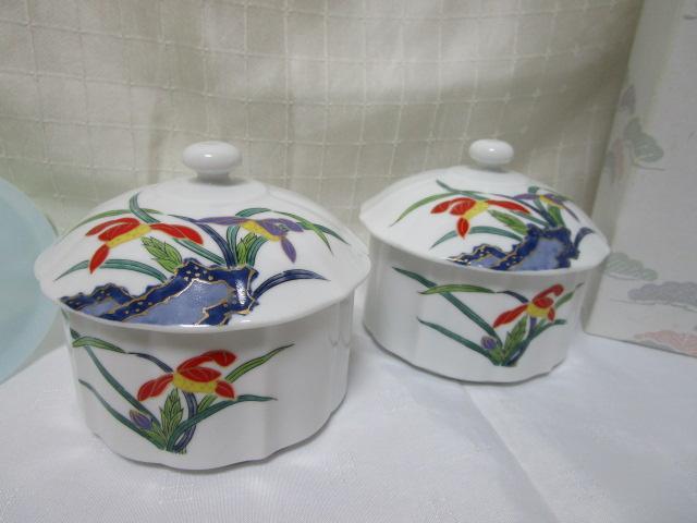 - 錦松梅 光峰作 蓋付き器 同柄2個セット 春蘭