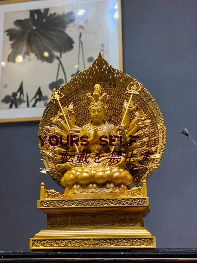 - 極上彫 千手観音菩薩 木彫 置物 観音菩薩 座像 仏教工芸品 香樟材 精密彫刻 木彫仏教 仏師で仕上げ品