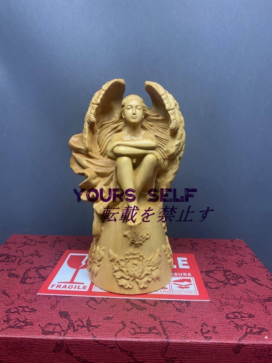 - 大迫力 天使の置物 両翼 天使 エンジェル 置物 祈り 天然の木 木彫り 美術品