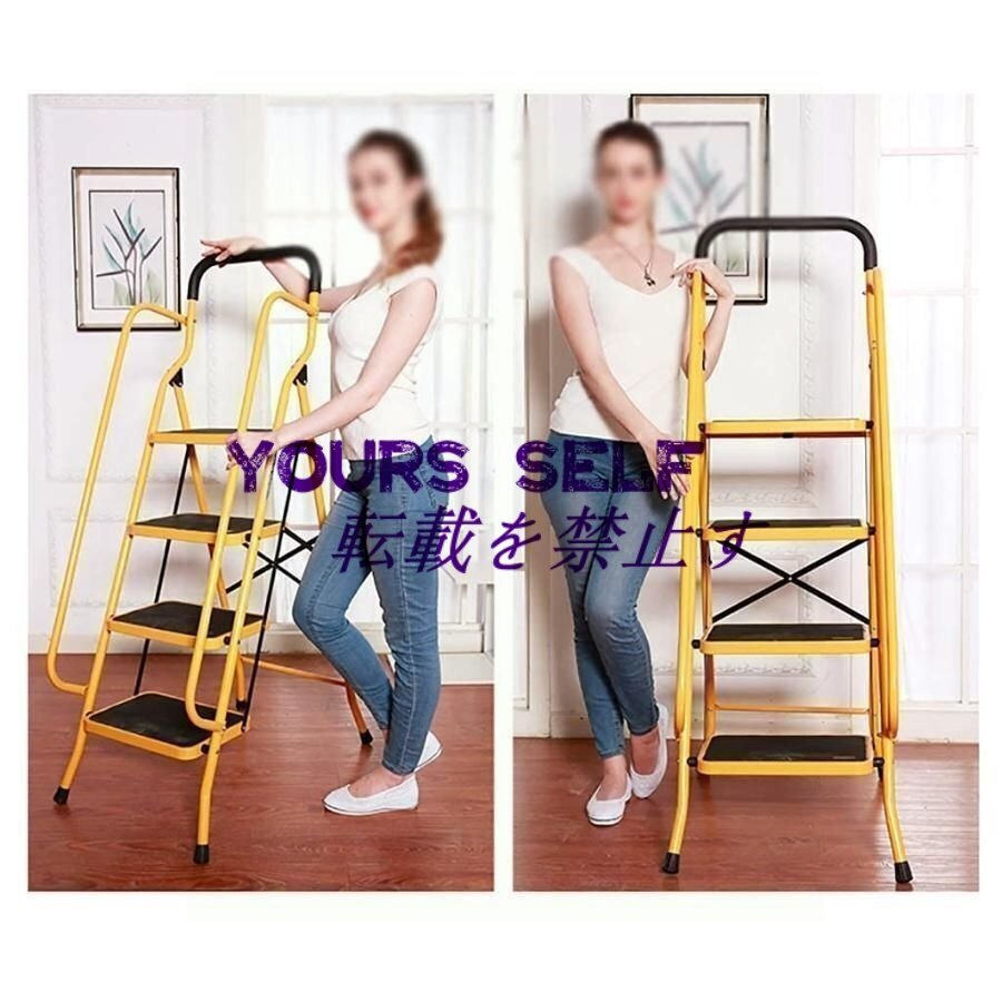 > 踏み台 兼用脚立 はしご 4ステップはしご 安全手すり付き ポータブル折りたたみ 専用脚立 ホーム多機能 頑丈な鋼 耐荷重150kg