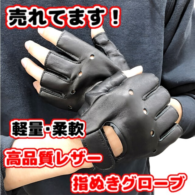 - (B) 革 レザー グローブ ドライビンググローブ 半指 手袋 メンズ バイク 指ぬき ロック 運転 ドライブ ドライバー 肉厚パッド