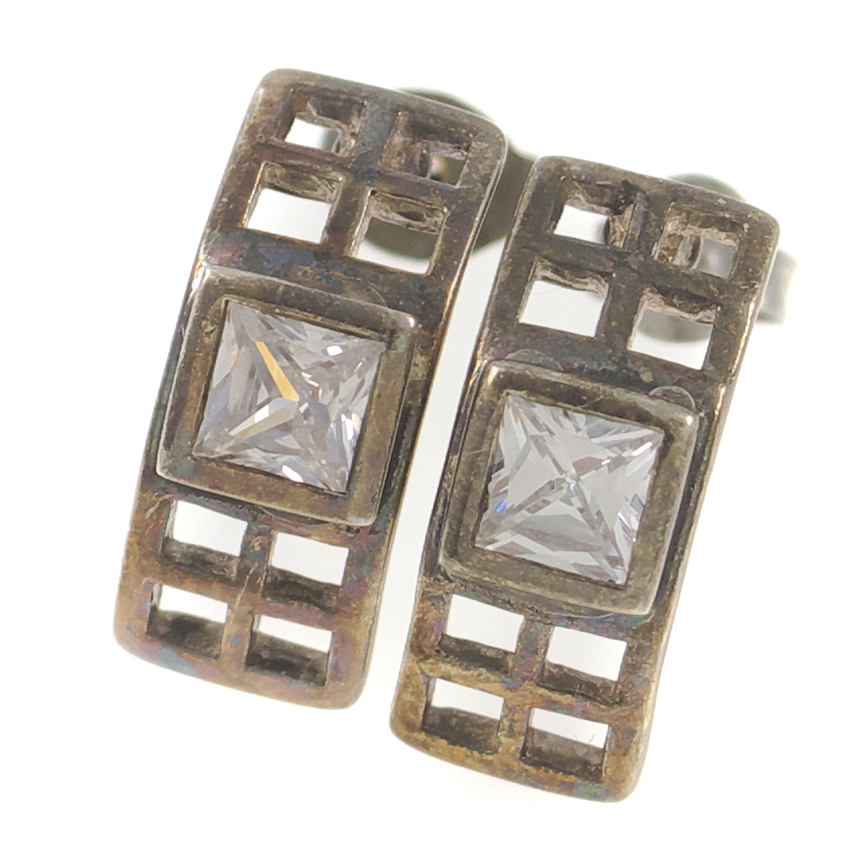 - UK2936◆【925】◆ スターリングシルバー クリアストーン 刻印付き 純銀 英国 イギリス ◆ ヴィンテージ ピアス イヤリング ◆