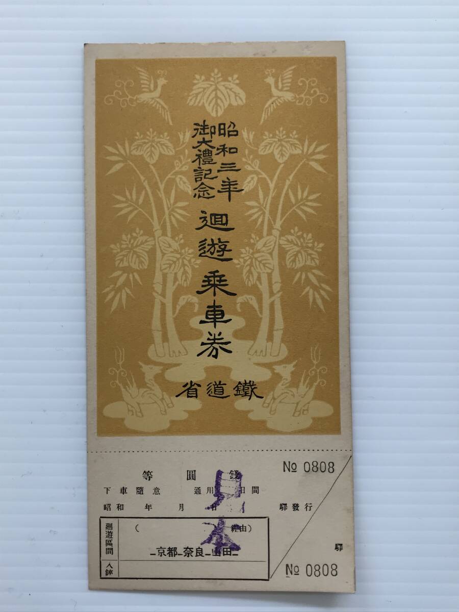 - 昔の切符 記念切符 昭和3年 御大禮記念 廻游乗車券 鐡道省 見本 京都ー奈良ー山田 HF7162 くるり岸田繁