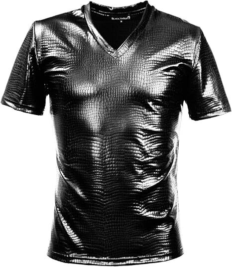 - BLACK VARIA Tシャツ クロコダイル メンズ Vネック 光沢 メタリック 日本製 半袖Tシャツ ブラック黒 173308