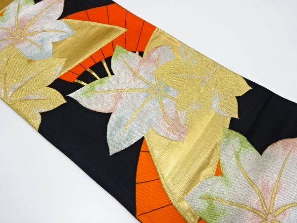 - ys7278561; 扇に紅葉模様織り出し袋帯(材料)【アンティーク】【着】