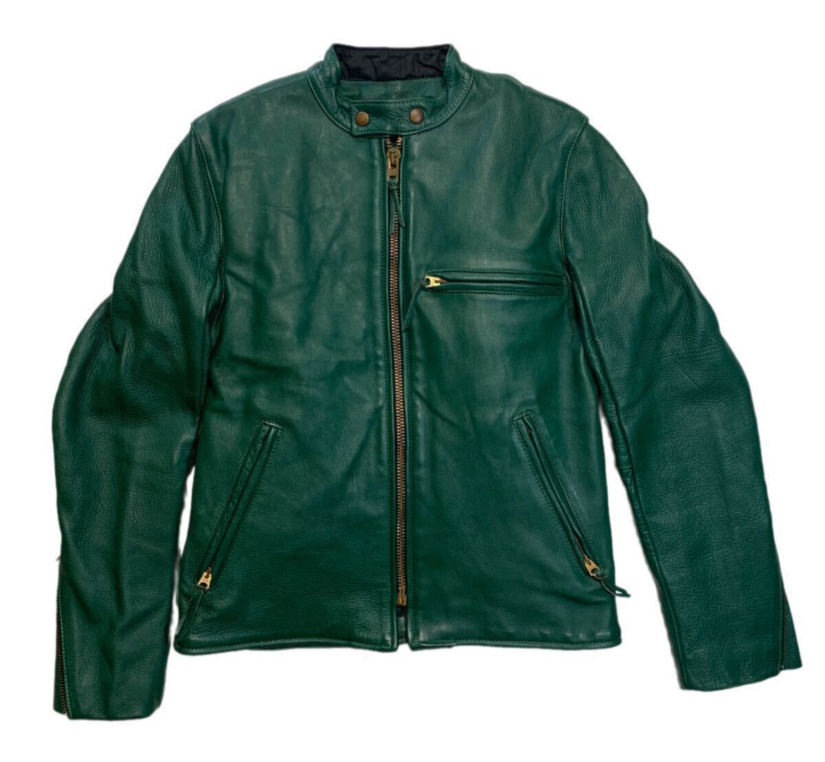 - 80s90sビンテージ Vanson Leathers バンソン シングル ジャケット カフェスタイル シボレザー バイカー ステアMADE IN USA 39位 グリーン