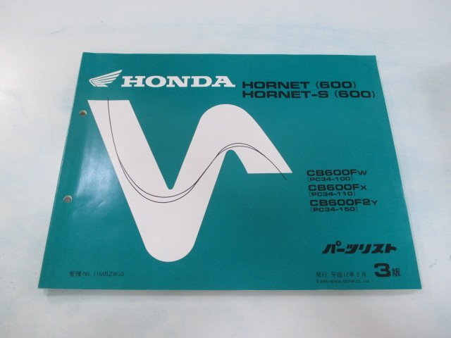 > ホーネット600 S パーツリスト 3版 ホンダ 正規 中古 バイク 整備書 PC34-100 110 150 xA 車検 パーツカタログ 整備書