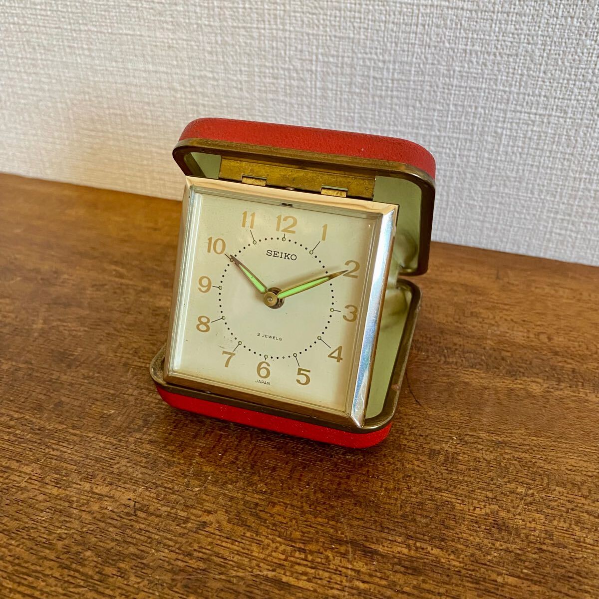 - 昭和レトロ SEIKO トラベルクロック ゼンマイ式 / セイコー 手巻き式 旅行時計 折り畳み 2石 ヴィンテージ