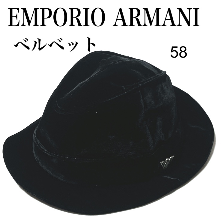 > エンポリオアルマーニ ベルベット ハット 58 EMPORIO ARMANI イーグルロゴ ベロア HAT 帽子