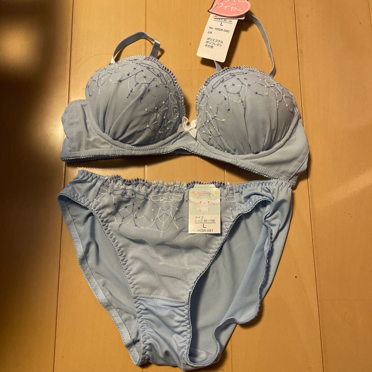 - 送料無料 新品 シナモン シナモロール ブラ&ショーツセット サイズL ②ノンワイヤー 75BCD 80AB 70DE 水色 040 送料込み