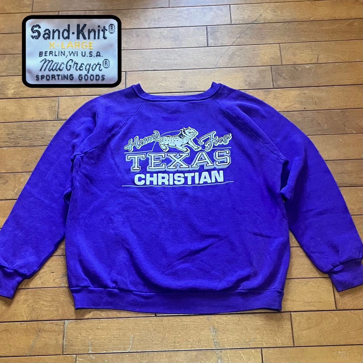 - ☆【 Sand-Knit 】☆80's Made in USA ビンテージ カレッジプリントスエットクルー★サイズXL