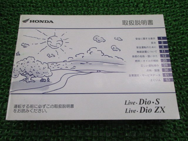 > ライブディオS ZX 取扱説明書 ホンダ 正規 中古 バイク 整備書 AF34 AF35 GBL LiveDioS ZX dr 車検 整備情報