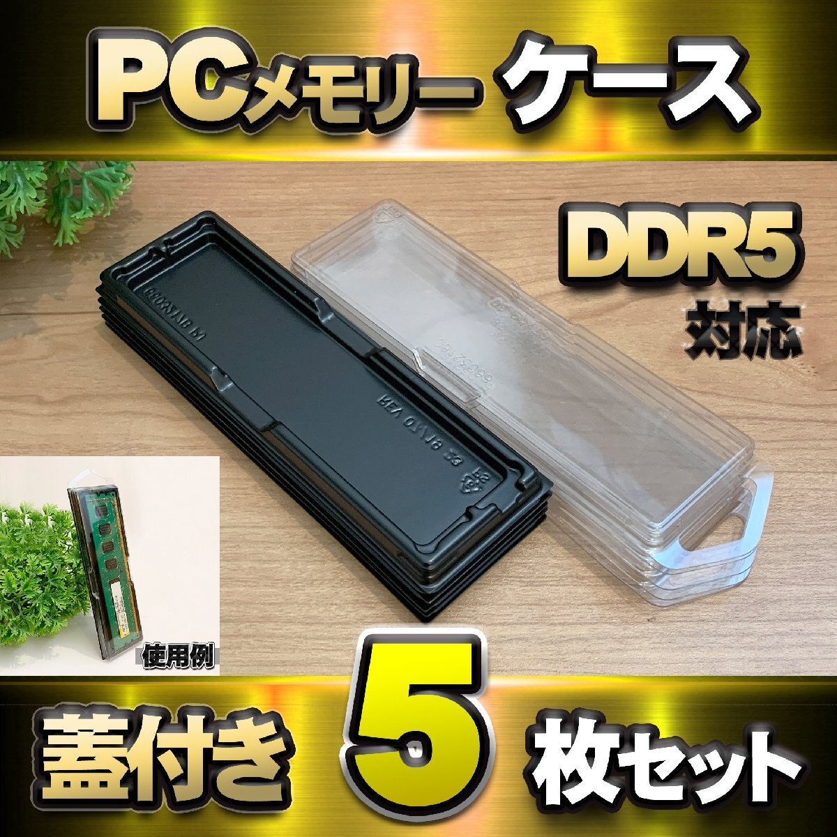 - 【 DDR5 対応 】蓋付き PC メモリー シェルケース DIMM 用 プラスチック 保管 収納ケース 5枚セット