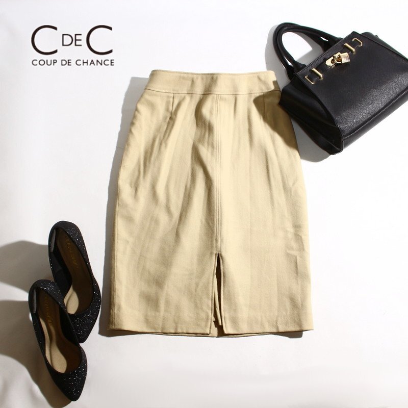 - 美品 クードシャンス COUP DE CHANCE 株) ワールド 冬 毛95% ウール タイトスカート 9号 38 ベージュ ミセス 綺麗め オフィス