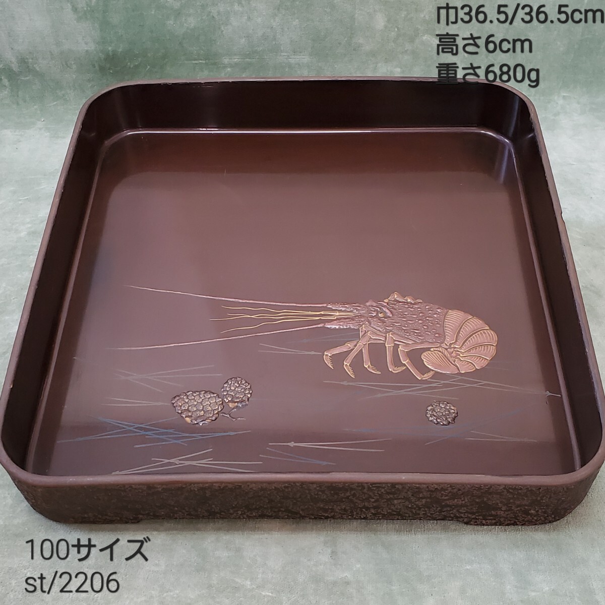 - 蒔絵 木製漆器 お盆 (検索 骨董 アンティーク 角盆 盆 漆器 時代物 懐石道具 st/2206