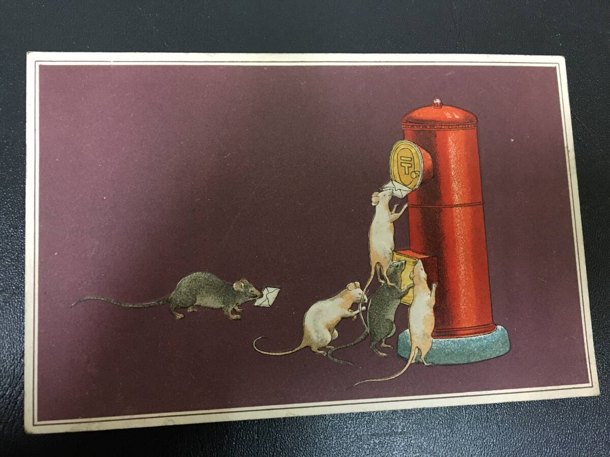- ★未使用・昭和初期ごろ★郵便はがき「郵便ポスト ねずみ ネズミ 」干支 絵葉書 ポストカード (本間2保管)