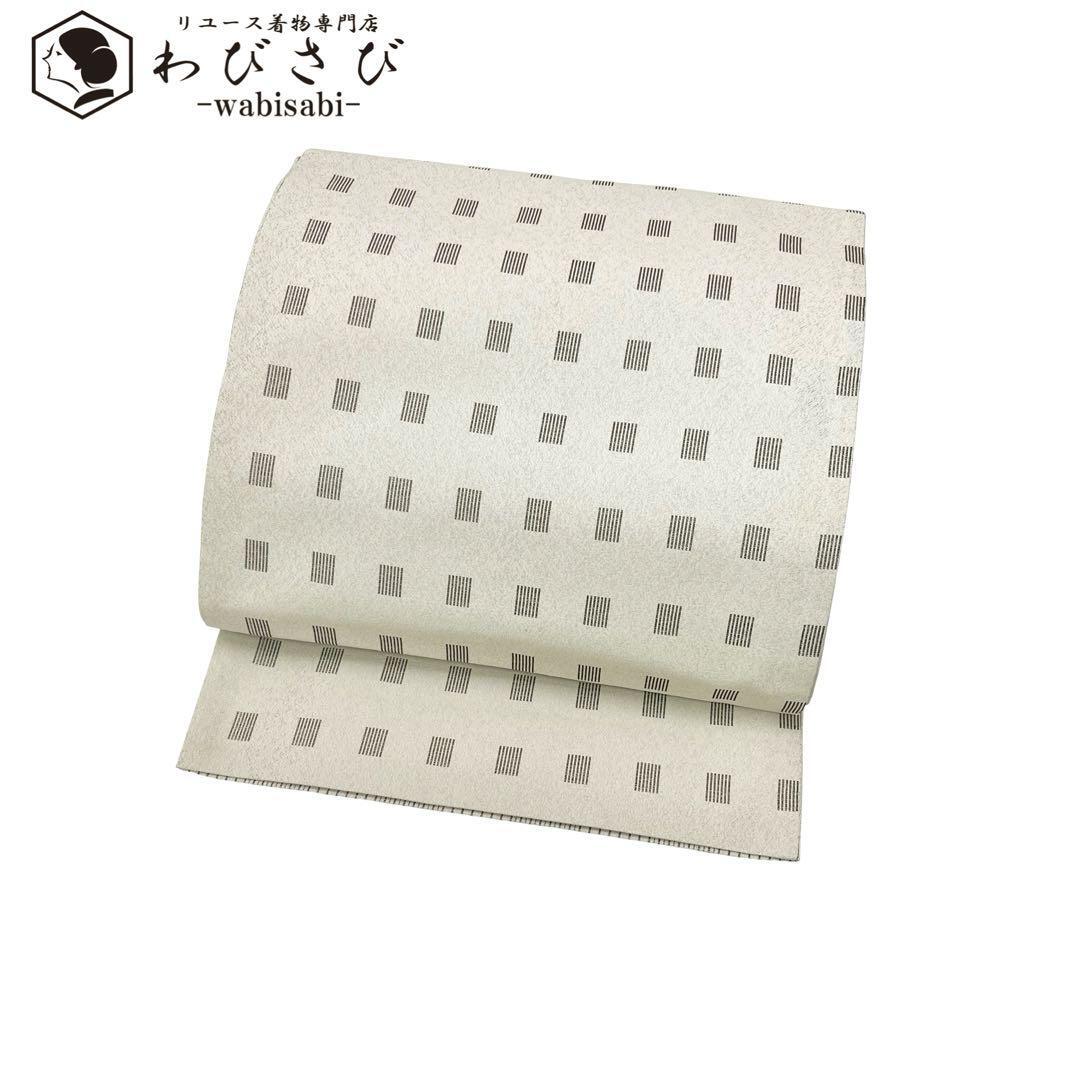 - 京袋帯 縦線ドット模様 灰白色 ガード加工 O-4589 着物 きもの kimono 和服 和装 中古 リサイクル着物 【送料無料】