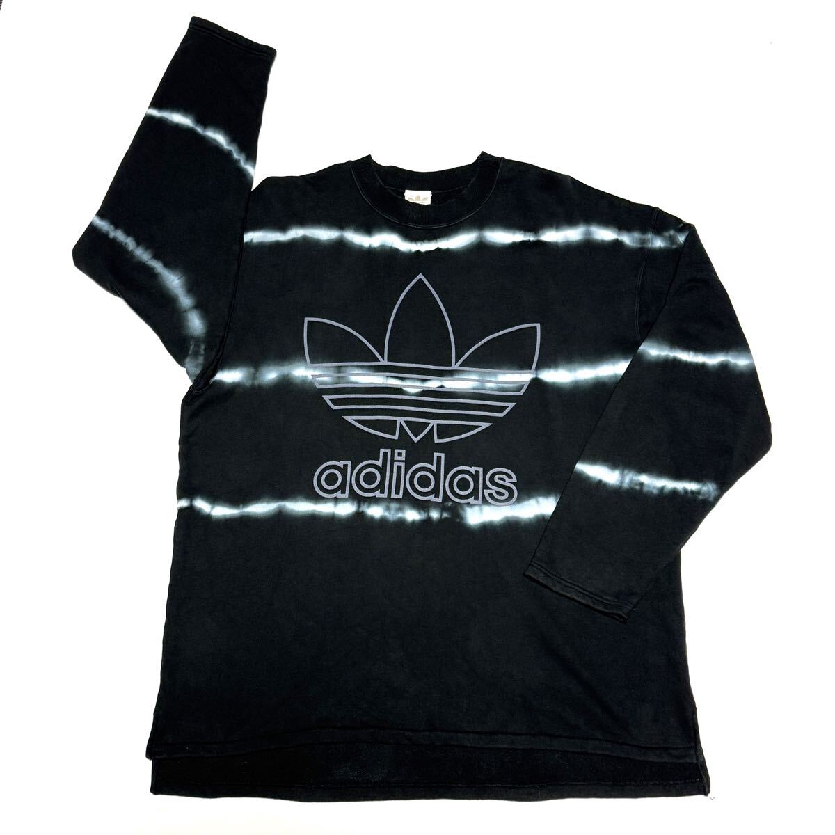 > 90s XL相当 アディダス スウェット 黒 メンズ 古着 ビンテージ タイダイ ナイスカラー バスケ サッカー 即決 廃盤モデル