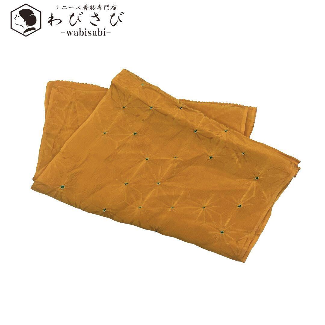 > 和装小物 帯揚げ 正絹 絞りに麻の葉模様 橙色 C-5422 着物 きもの kimono 和服 和装 中古 リサイクル着物 【送料無料】