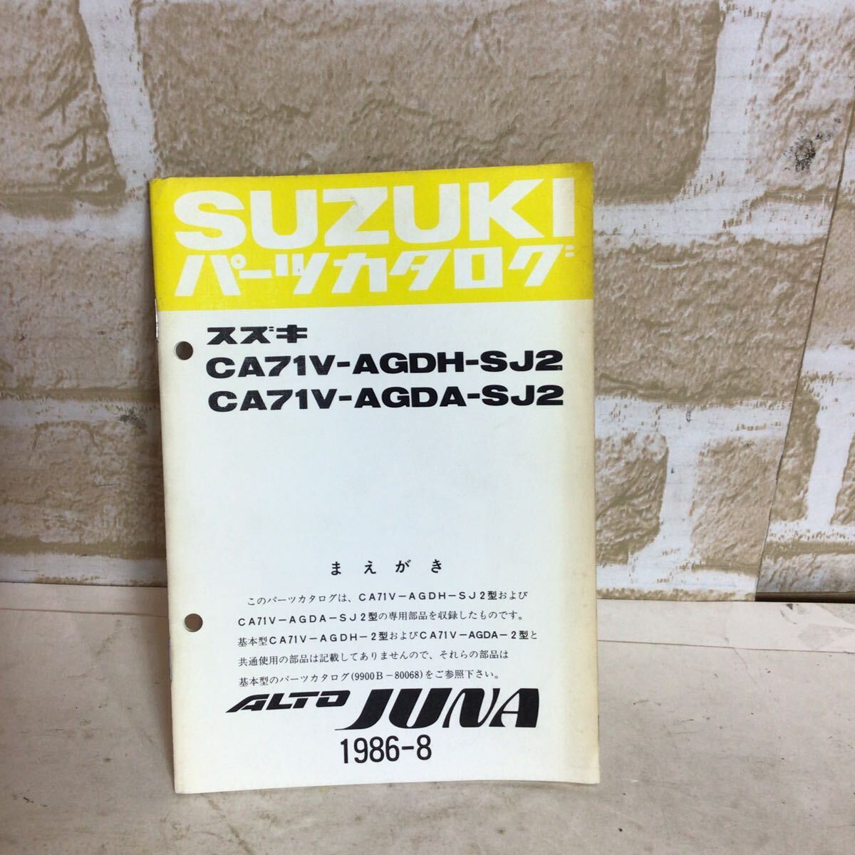 > スズキ ALTO JUNA 《CA71V-AGDH-SJ2, CA71V-AGDA-SJ2》1986.8発行 専用部品収録 パーツカタログ 車検 一般的整備 中古