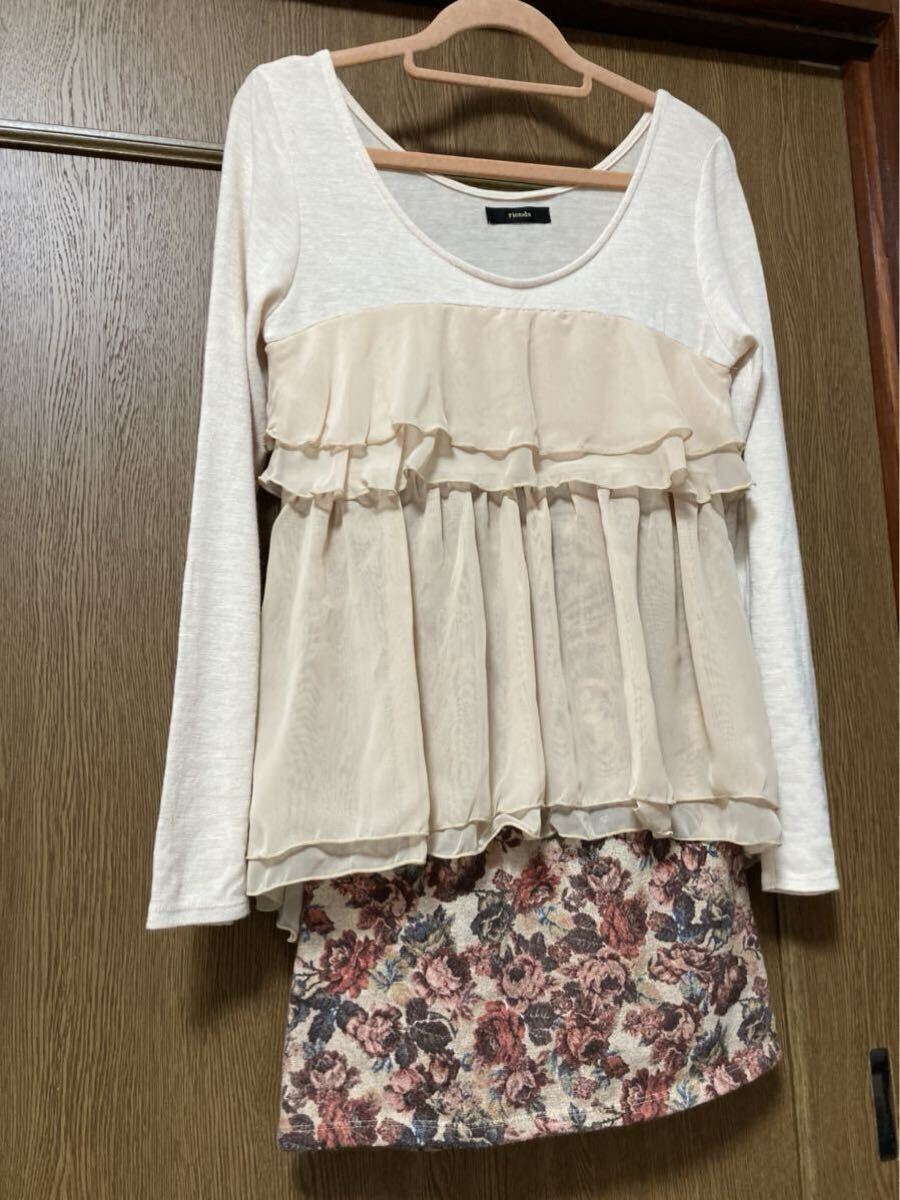 - 美品★ ティアード フラワー コクーン ワンピース リエンダ/rienda シフォン アイボリー ベージュ レディース ペプラム S