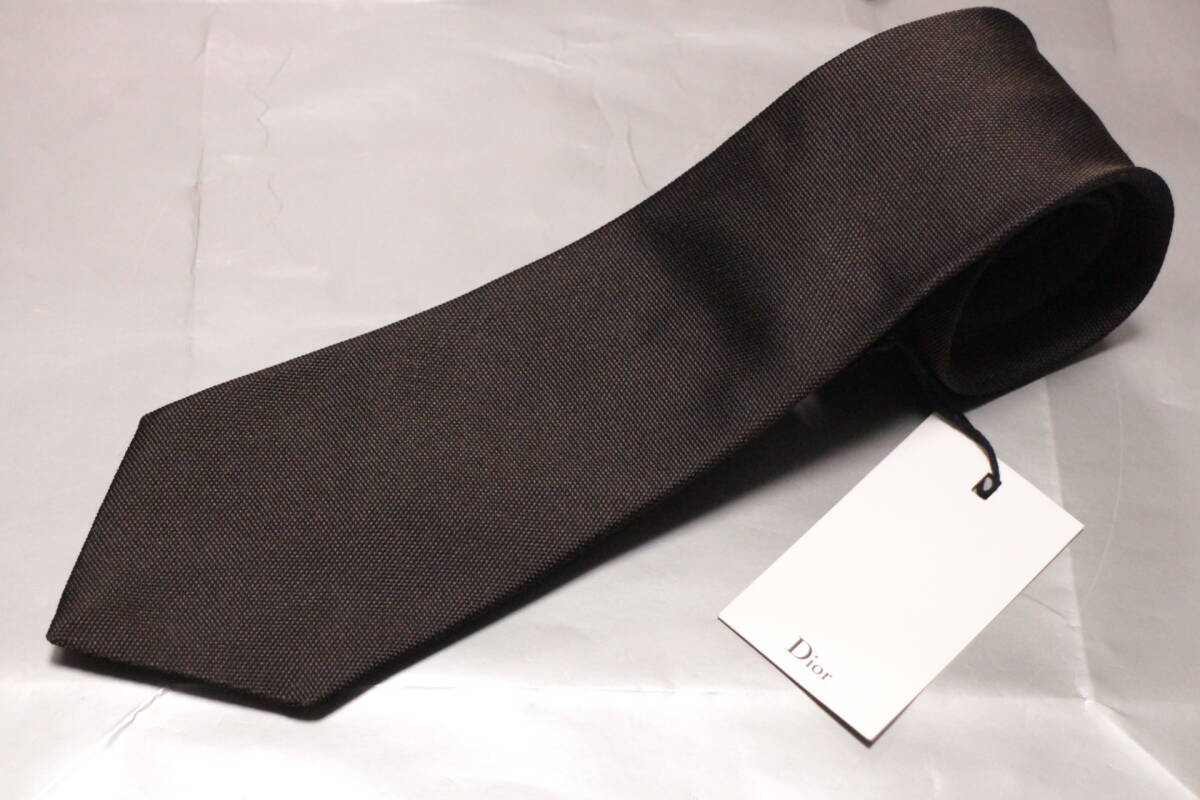 - ディオールオム新品ネクタイ極上艶ブラウンソリッドフルハンドメイド超希少大人気柄Dior