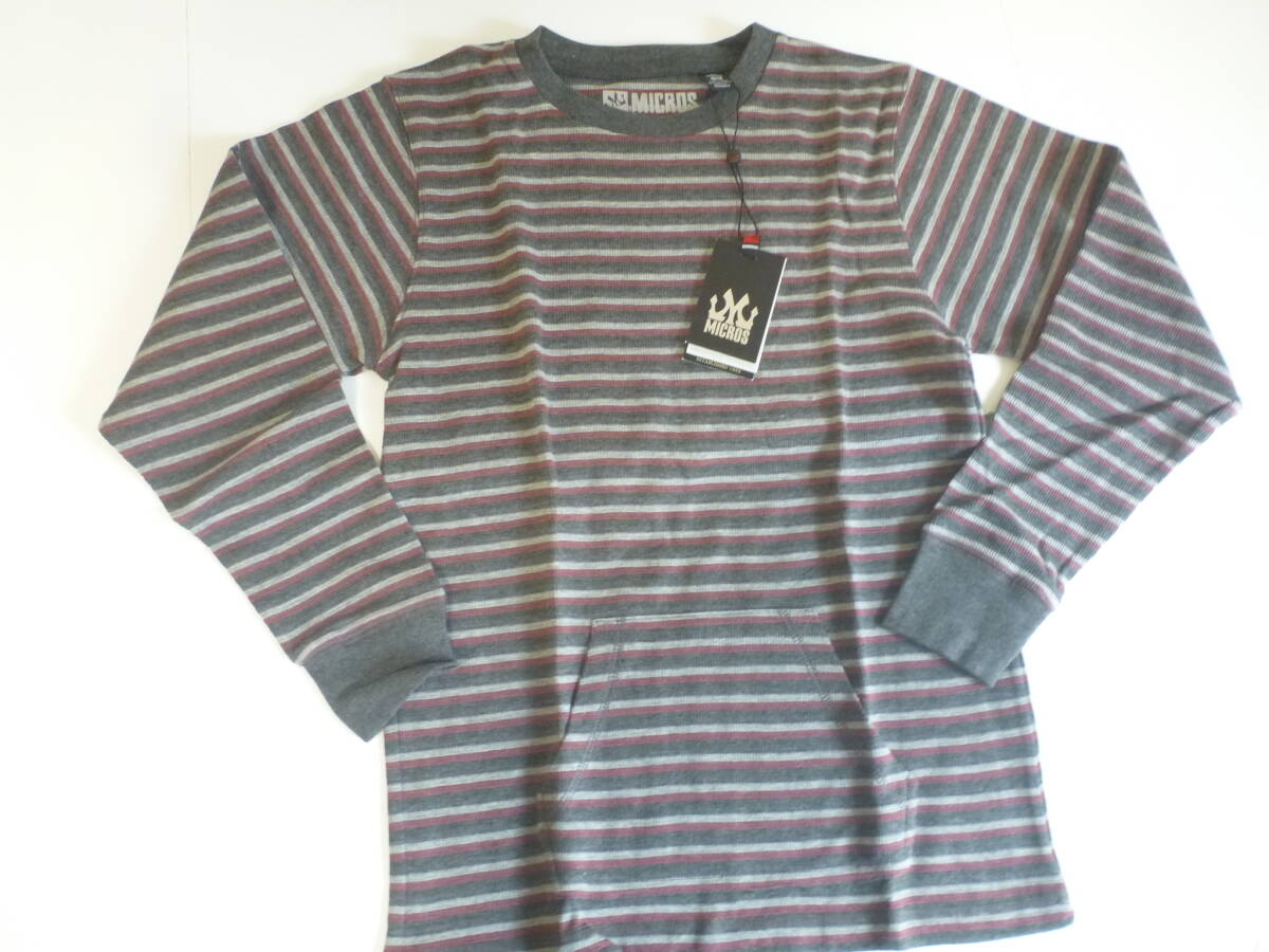 > 新品 MICROS★トレーナーとTシャツの間の生地 厚め グレー×ボルドー トップス 150 60