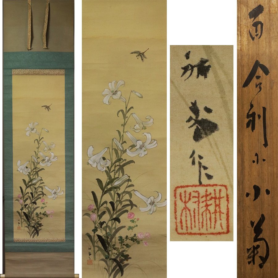 - 《源》【即決・送料無料】菅生耕村 筆「百合と小菊図」/共箱付