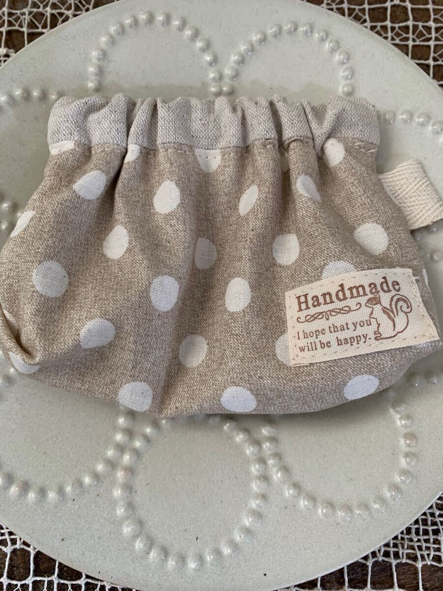 - ハンドメイド バネポーチ ポーチ 小物入れ ベージュ 水玉柄