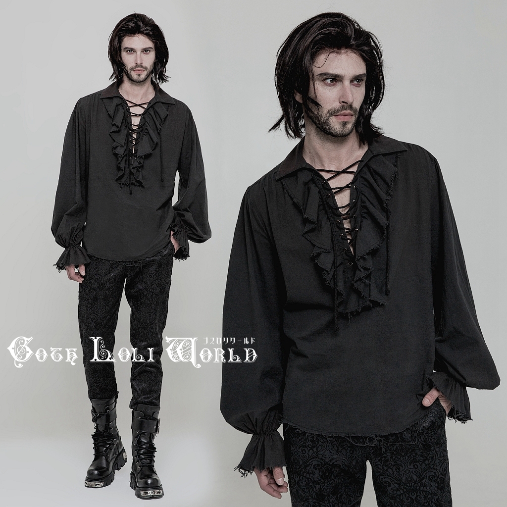 > 即納 WY-873CCM-BK-L-XL ムラ染めダメージ絞り袖 カットソー ブラウン色 メンズ ファッション ゴシック パンク ロック ビジュアル系