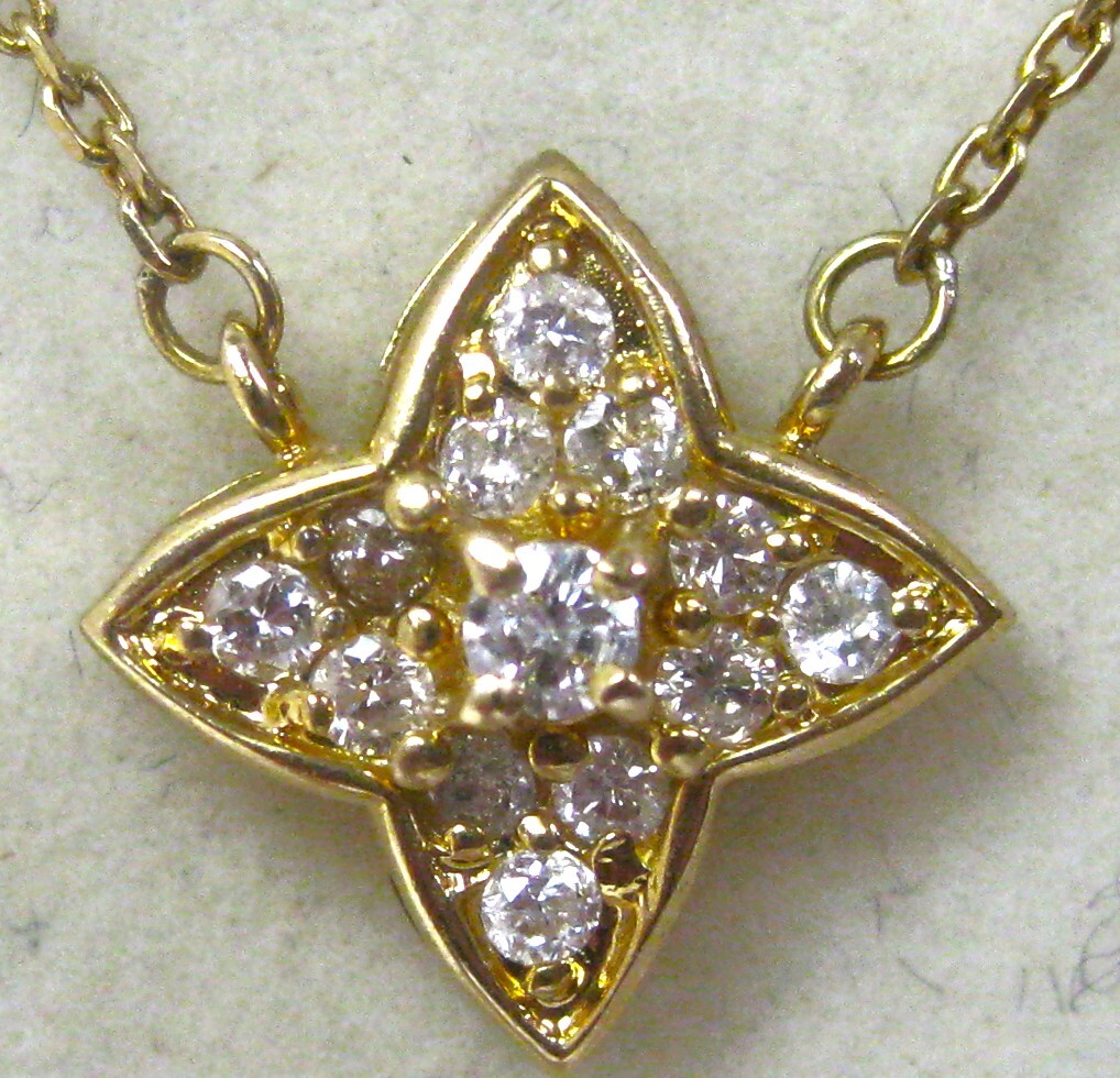 > 【東京 谷中 質屋おぢさん】K18 18金ダイヤプチ チェーン ネックレス ダイヤ13ヶ0.26ct40cm