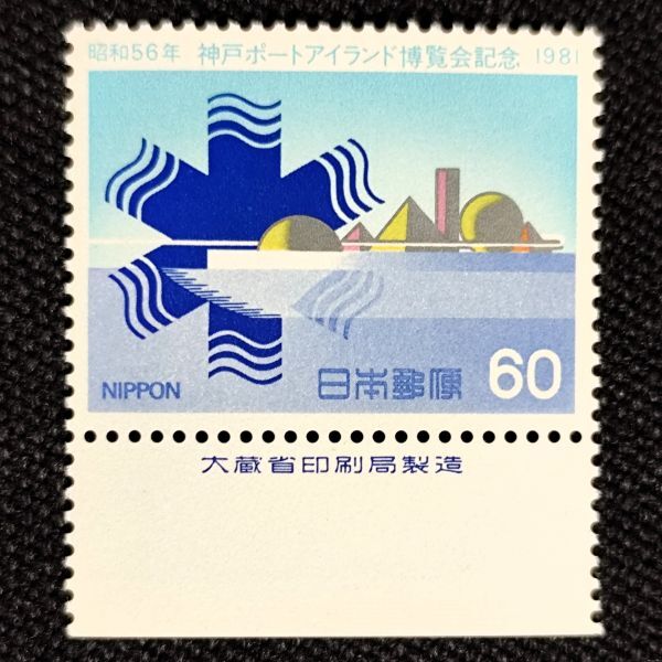 - [25012624]【神戸ポートアイランド博覧会記念】単片 銘版付「同博図案」60円 1981年発行 美品