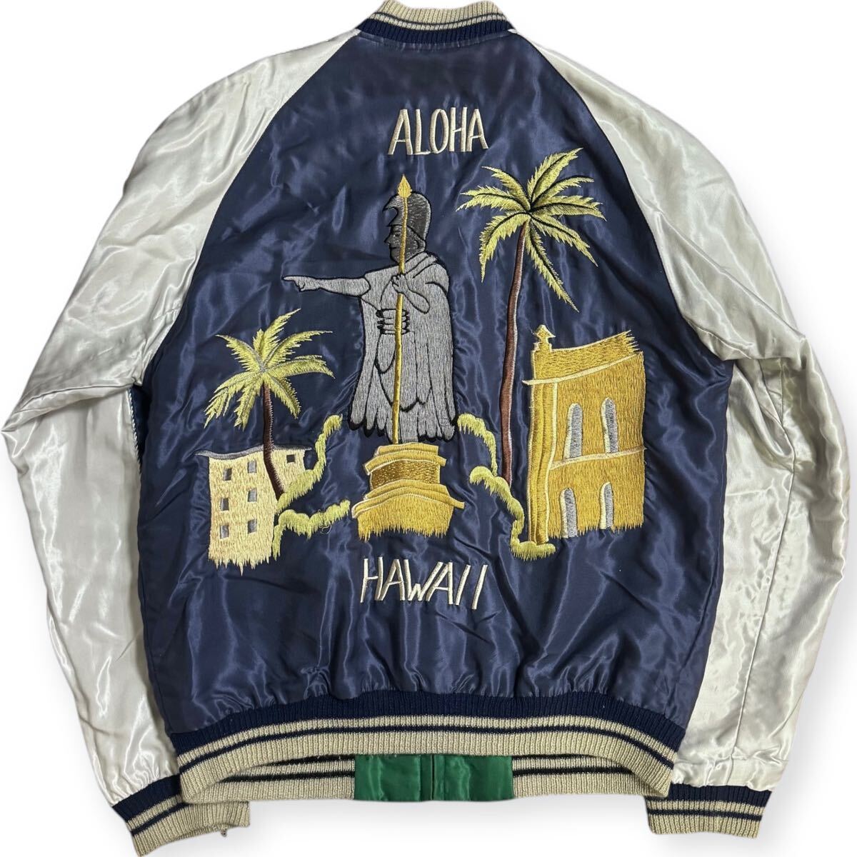 > TAILOR東洋 リバーシブル サテン スカジャン カメハメハ大王 ハワイアンクレスト Sサイズ スーベニアジャケット 刺繍
