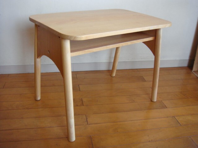 > ◆ 弘益 KOEKI コンパクト木製ソファーテーブル 横幅60×奥行40×高45 便利な収納棚付 角丸天板&丸脚 廃番 サイド カフェ 世田谷発 引取可