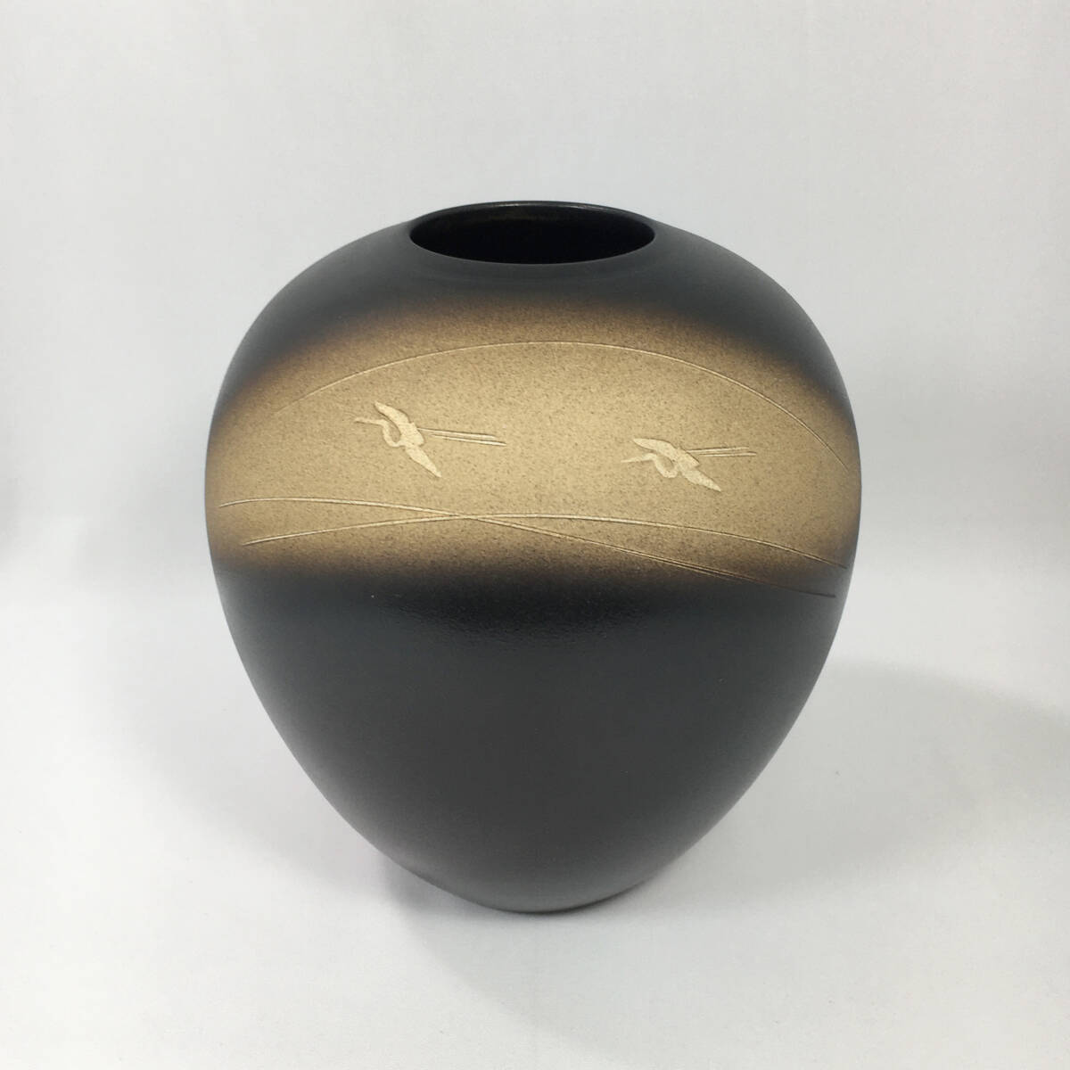 - 【美品】橘吉 花生 幽彩 高さ21cm 双鶴 京焼 清水焼 花瓶 花器 壺 たち吉