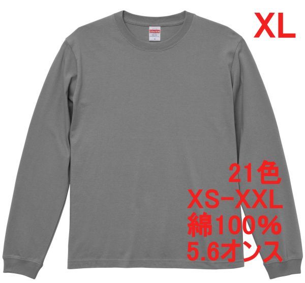 - 長袖 Tシャツ XL ストーン グレー 袖リブ 綿100 5.6オンス 無地 無地T 長袖Tシャツ ロンT コットン A513 LL 2L 灰 灰色 501101 5011-01
