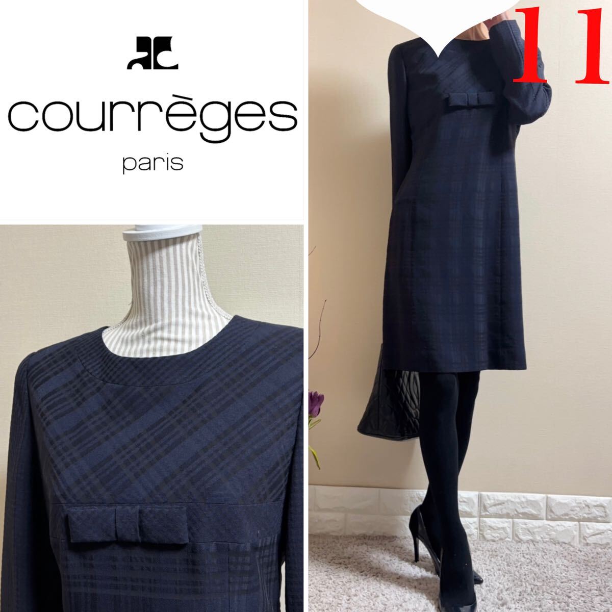 - courreges クレージュ 定価49,000円 長袖 フォーマル ワンピース 濃紺 11 L 七五三 入学式 卒業式 式典
