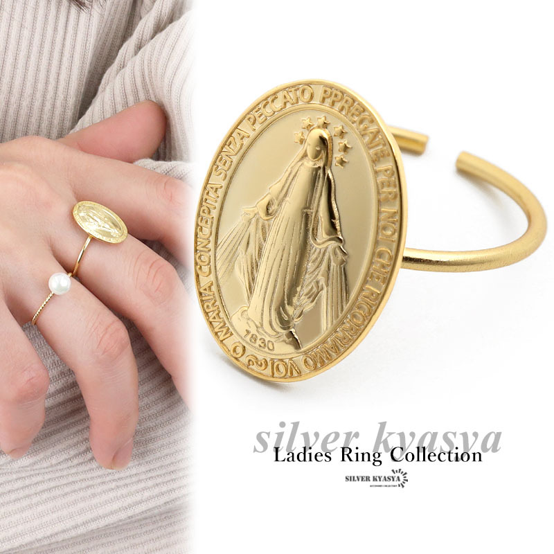 - シルバー925 コイン リング k18 レディース 指輪 フリーサイズ 18金メッキ ゴールド マリア メダイ 金属アレルギー