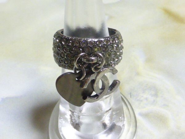 - 「宅急便コンパクト」送料無料◇ シャネル CHANEL◆CC&ハート ラインストーンガンメタリック 指輪(USED・難あり)◆