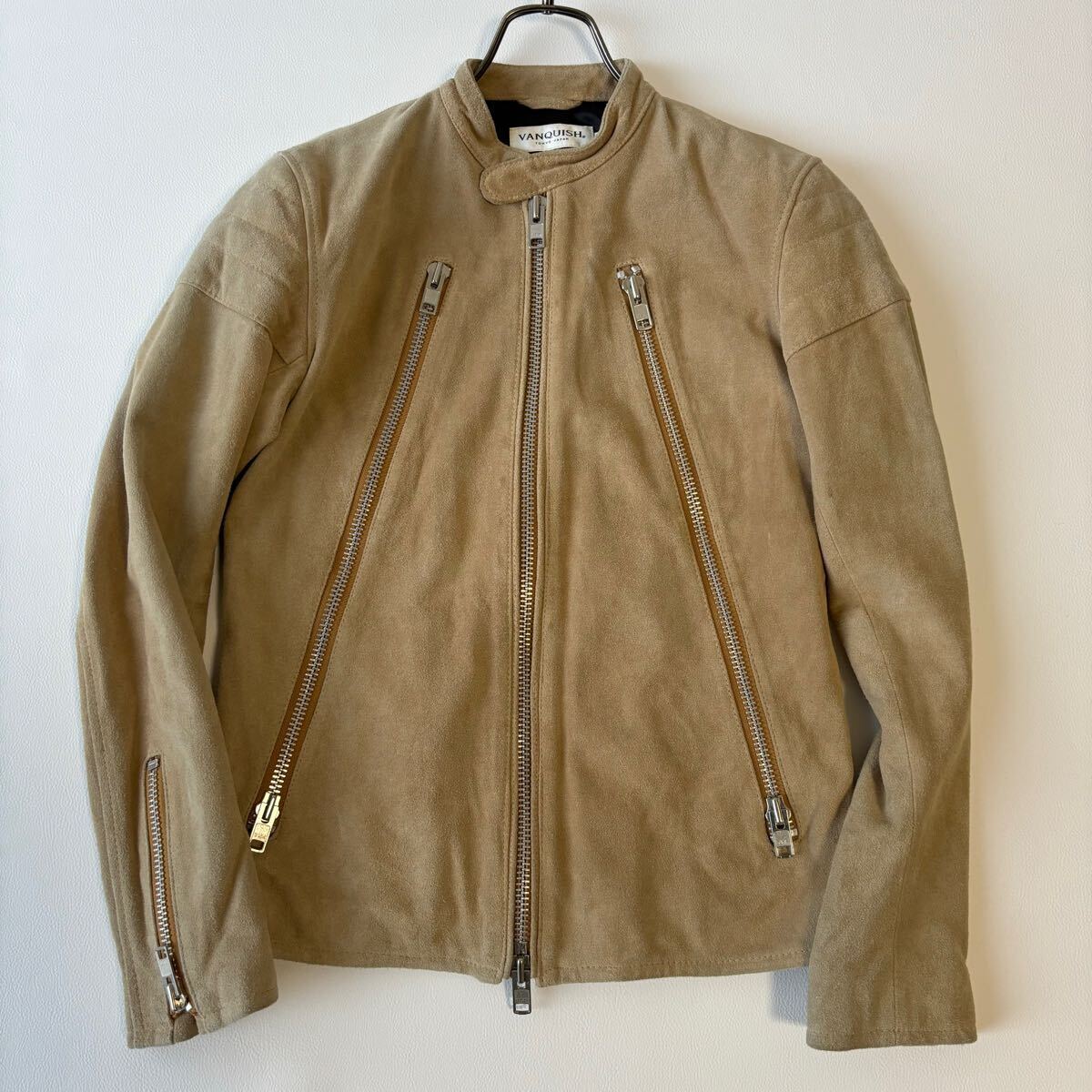 > ■最終価格 VANQUISH 希少 人気 ヴァンキッシュ シングルライダース ジャケット M スエード 本革 レザー ベージュ メンズ ブルゾン