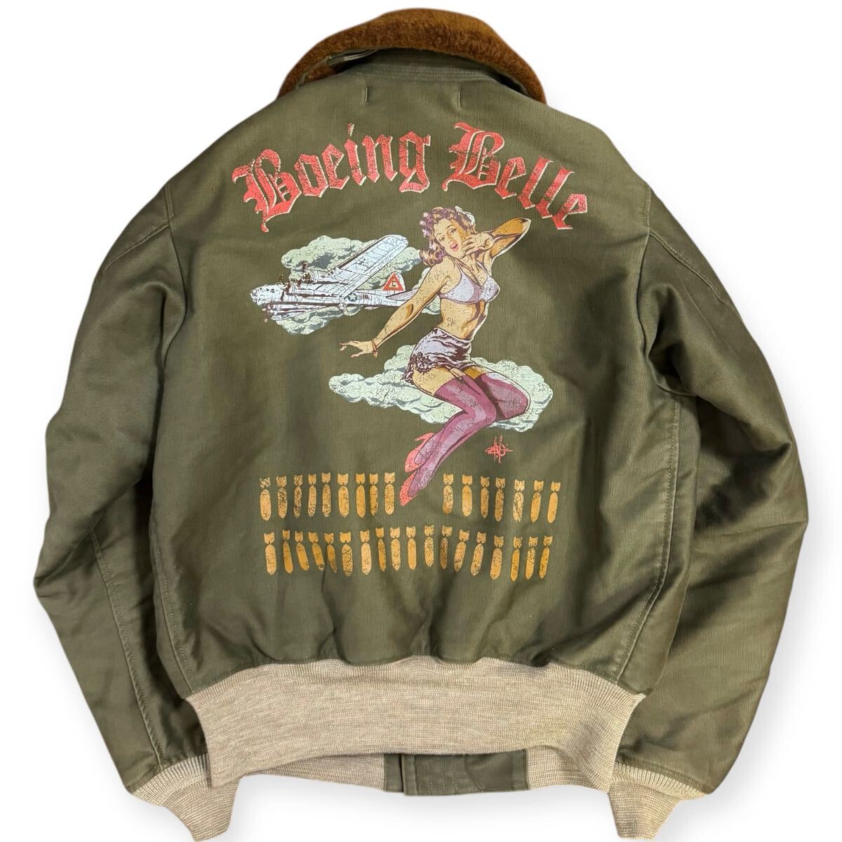 - 稀少 TOY'S McCOY ROUGH WEAR実名復刻 TYPE B-15A CIVILIAN 「BOEING BELLE」 サイズ38 カスタム 襟ムートン アルパカライニング