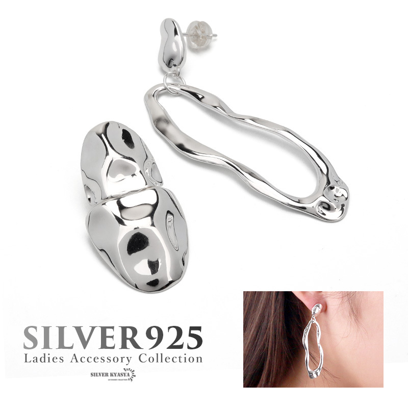 - ピアス 金属アレルギー シルバー925 ドロップピアス アシンメトリー 大きめ 大ぶり シルバー 銀 両耳用 2点