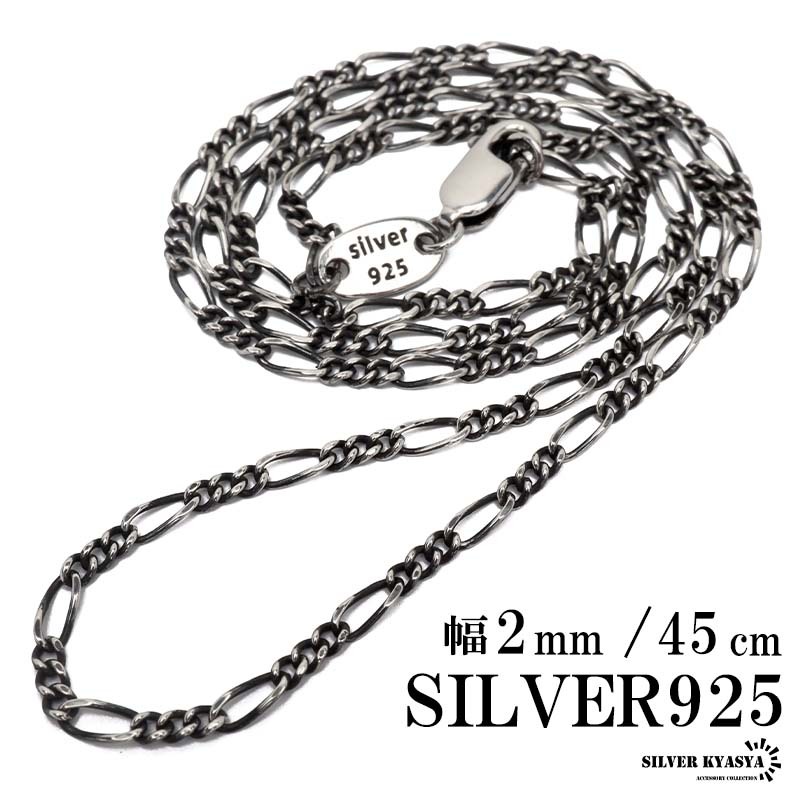 - シルバー925 チェーンネックレス 極細 細め フィガロチェーンネックレス 幅2mm 45cm 喜平ネックレス 金属アレルギー対応