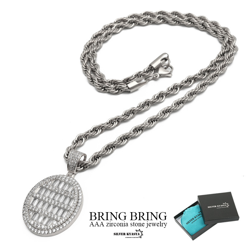 > サークルネックレス パヴェ AAA 18k wg GP オーバル スクエアストーン ロープチェーン B系 シルバー 専用BOX付属