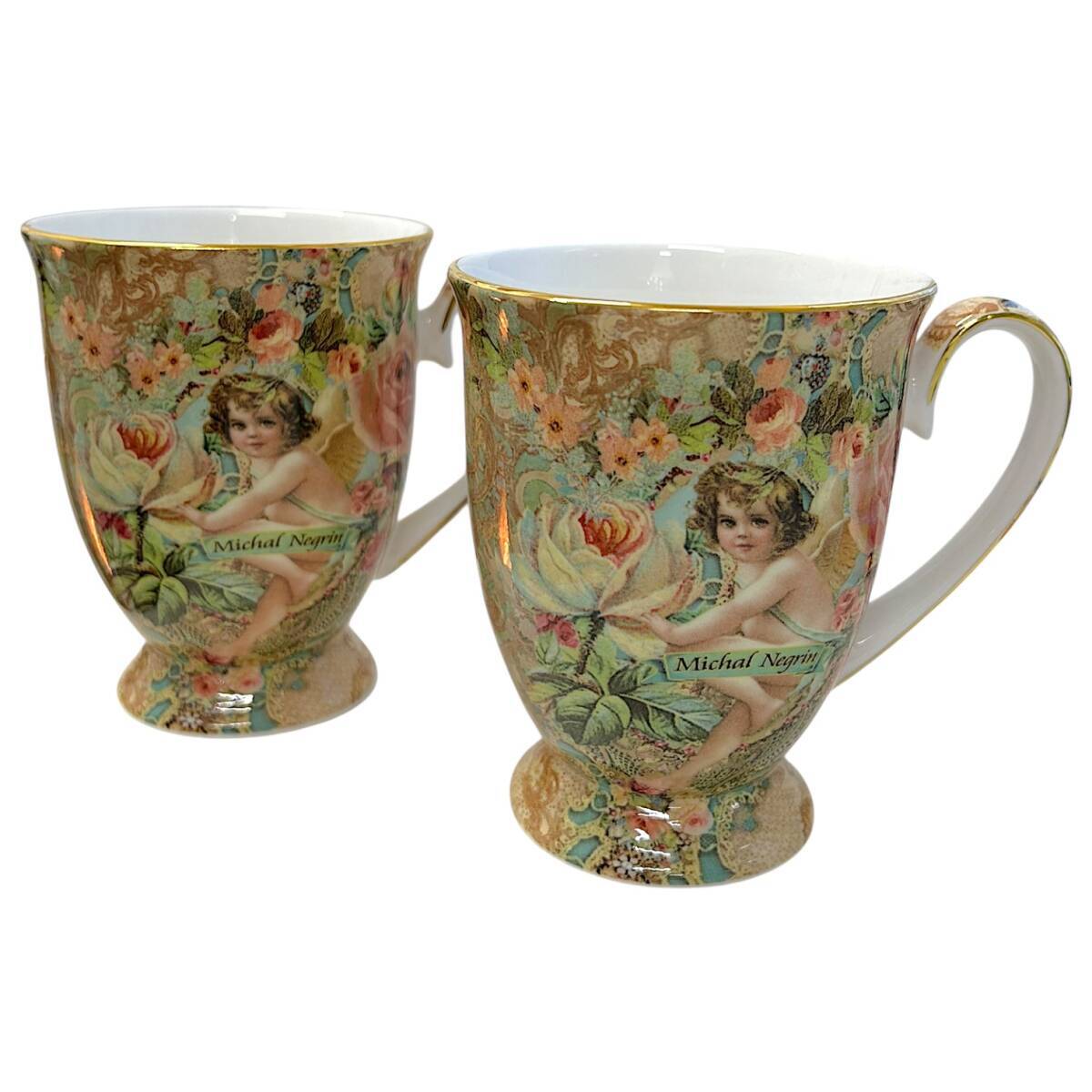 > Michal Negrin ミハエルネグリン ティーカップ コーヒーカップ 花柄 食器 マグカップ 陶器 ペアカップ ノベルティ アンティーク風【中古】