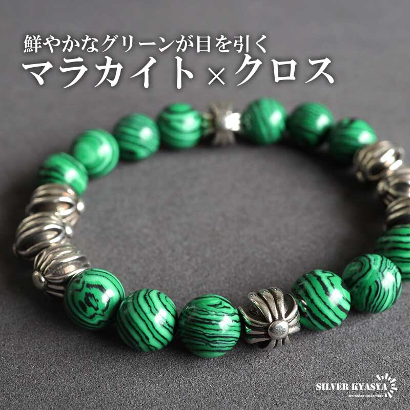 > マラカイトブレスレット クロスブレスレット 数珠ブレスレット 十字架 グリーン メンズ 男性 ストーンブレスレット