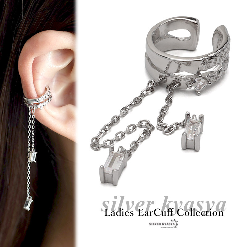 - イヤーカフ チェーンイヤーカフ 金属アレルギー シルバー925 チェーン 揺れる 透かし シルバー 銀 イヤークリップ 片耳用