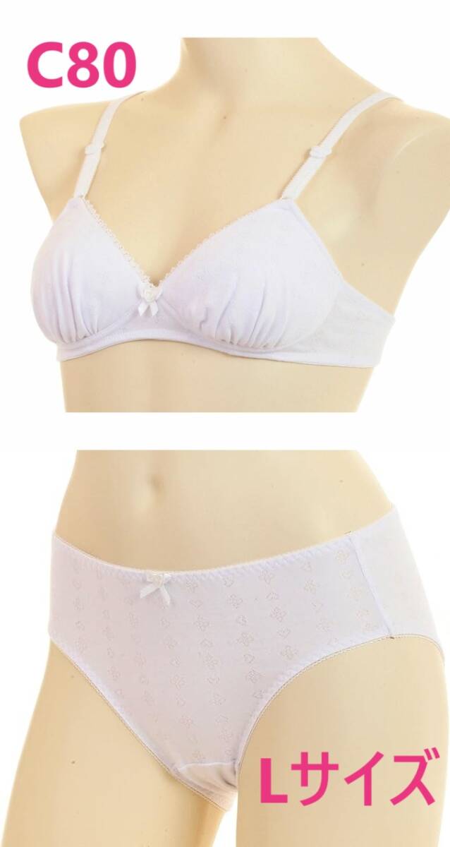 > ■送料無料■新品未使用品 アツギ ハイジュニ ジュニアブラ&ジュニアショーツセット C80 Lサイズハート花柄下着女児パンツブラジャー 24■